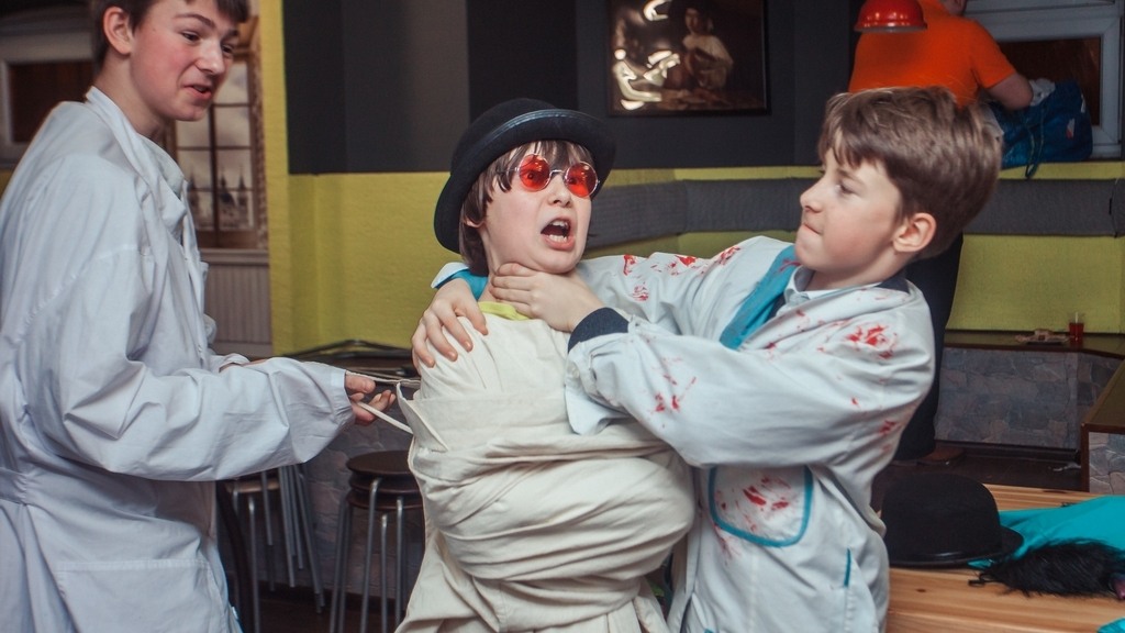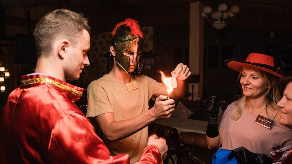 The Host distributes the roles according to players’ wishes and hands out the props. For example, the sheriff will get handcuffs and a colt in the «Wild West» game, the Mexican smuggler will have a sombrero and a map, and the doctor will get a white coat and first-aid kit. Everyone has their own goals: find a treasure, solve a crime, bring a family man out of coma, etc.